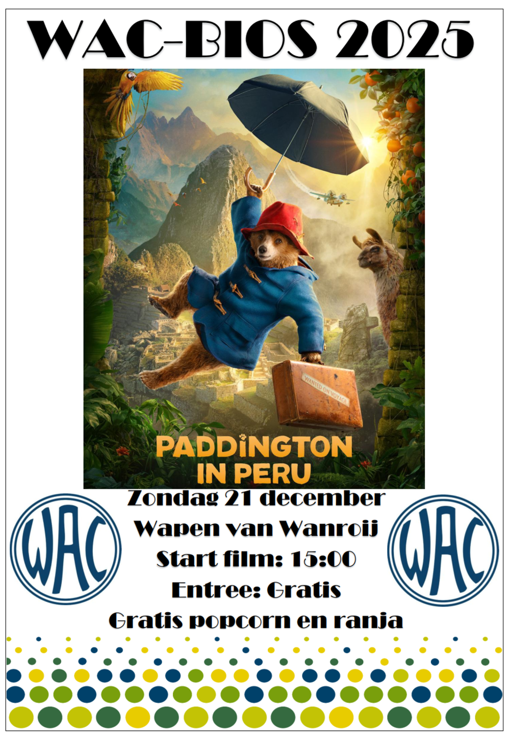 Ook dit jaar organiseert het WAC weer een gezellige filmdag in het Wapen van Wanroij, en wel op op zondag 21 December.